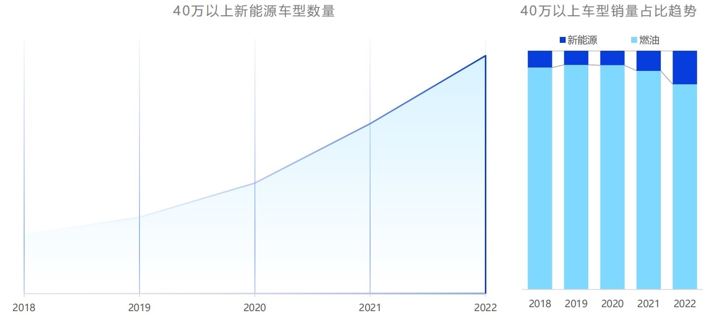 隨著近年來國內(nèi)新能源汽車市場及產(chǎn)業(yè)鏈逐漸成熟,向品牌高端化進軍的步伐逐漸加速,推出越來越多富有產(chǎn)品競爭力的車型,尤其自主品牌在高端化方面取得了良好的突破,在40萬元以上的高端市場逐漸站穩(wěn)腳跟,無論產(chǎn)品和價值均被用戶接受,高端化也成為自主品牌新能源汽車市場發(fā)展的核心推動力。